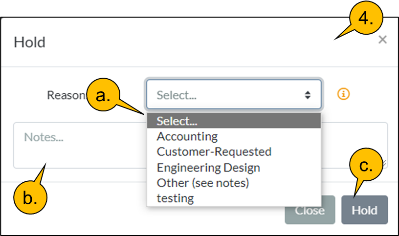 You would place a SmartJob™ On Hold if you did not want any work performed on that SmartJob™, such as missing documentation, customer request, credit hold, etc.