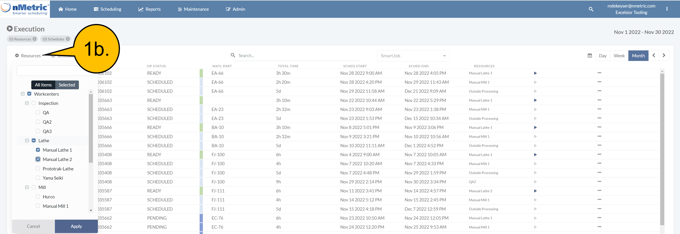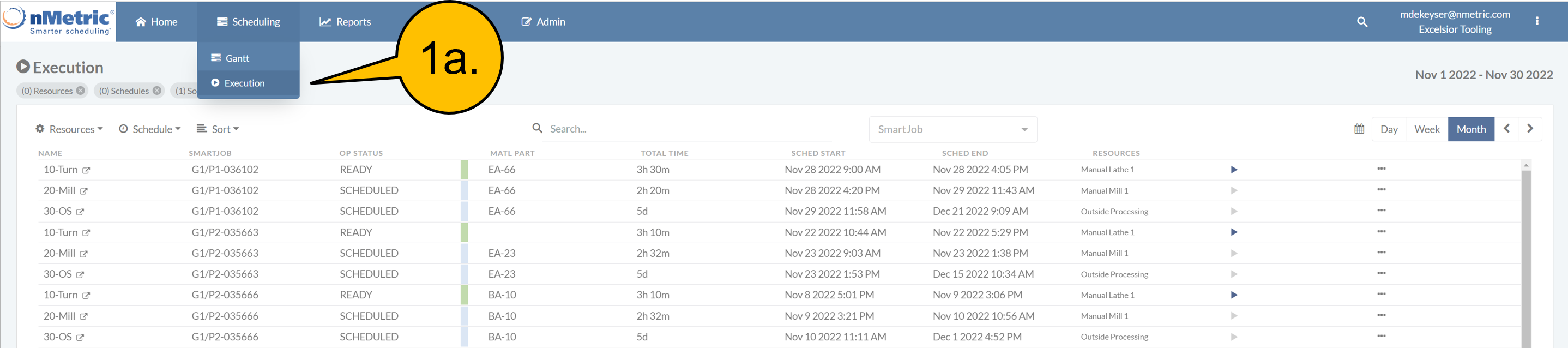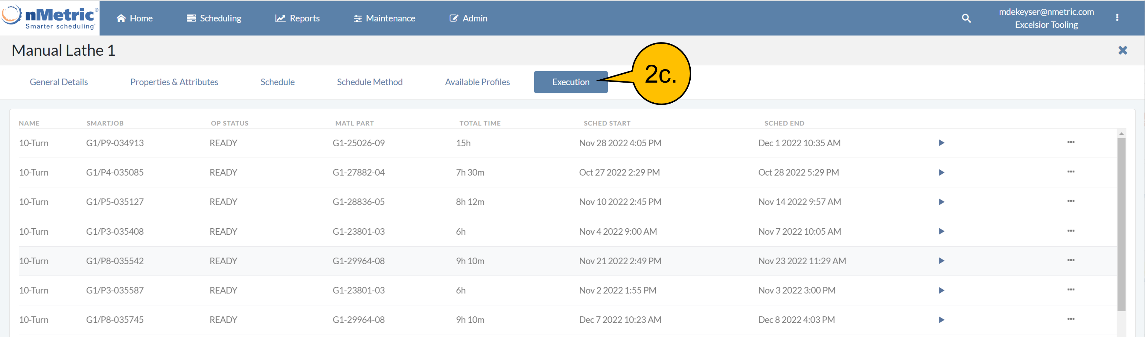 Select the “Execution” tab and all tasks scheduled to that resource are displayed and Execution actions can be taken.