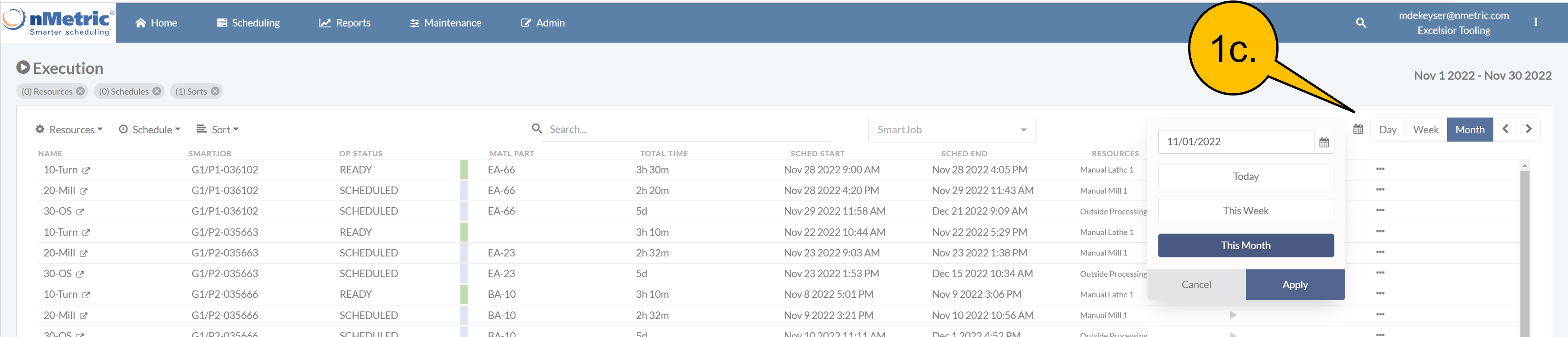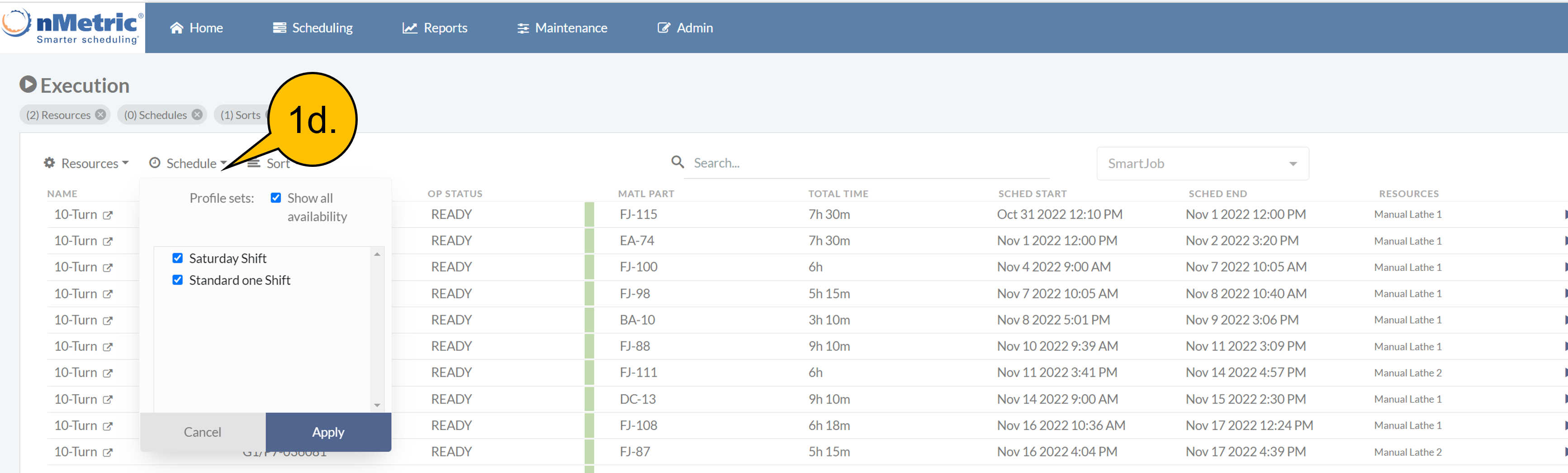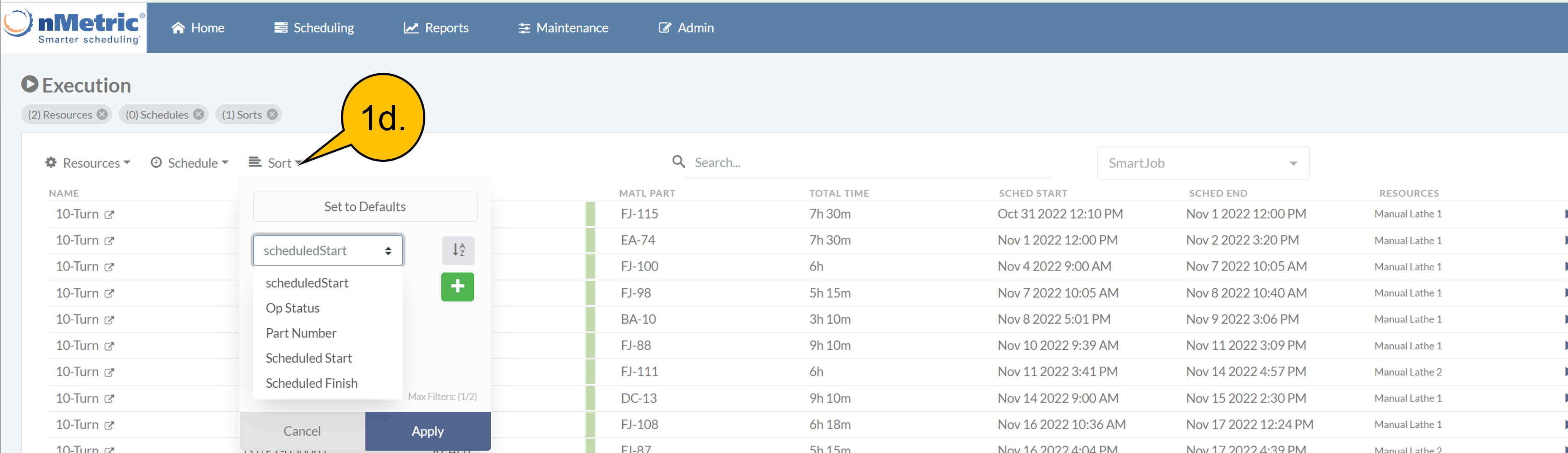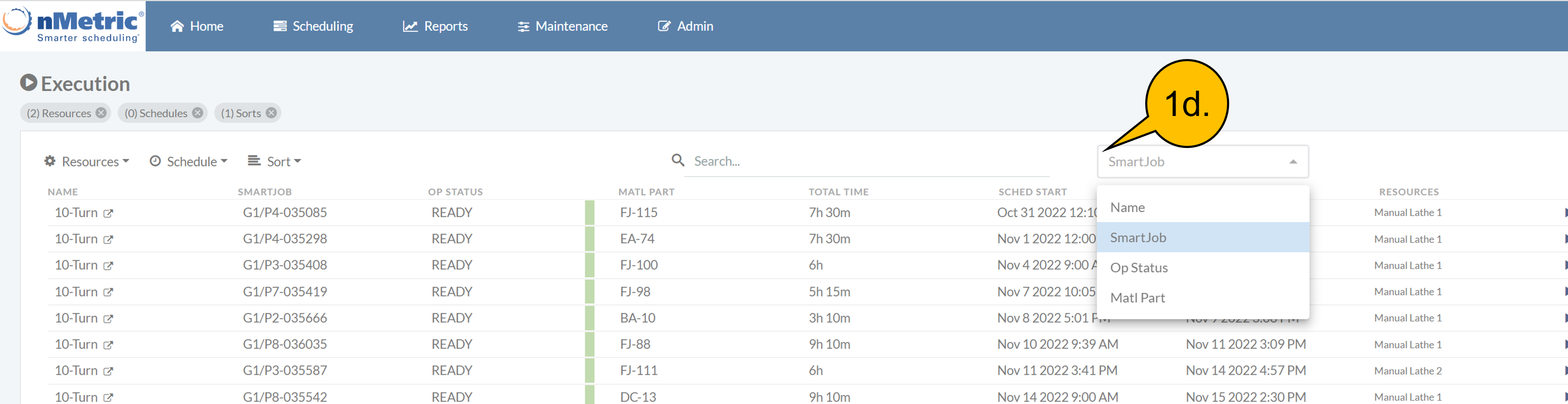 Sort by SmartJob, Op Status, Part Number, Scheduled Start or Scheduled Finish